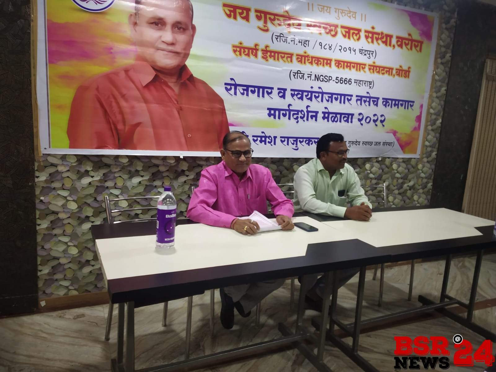 *वरोरा* : मागील काही दिवसात बेरोजगारी वाढली आहे. त्यामुळे बेरोजगारांना योग्य मार्गदर्शन मिळावे तसेच त्यांना रोजगाराच्या संधीबाबत माहिती व्हावी, या उद्देशाने जय गुरुदेव स्वच्छ जल संस्था, वरोरा तसेच संघर्ष इमारत बांधकाम कामगार संघटना बोर्डाच्या संयुक्त विद्यमाने महाराष्ट्र दिन १ मे रोजी सकाळी १० वाजता स्थानिक सिद्धीविनायक मंगल कार्यालय (पोलीस स्टेशन समोर) खांजी वार्ड, वरोरा येथे रोजगार व स्वंयरोजगार मेळावा, इमारत बांधकाम कामगार मार्गदर्शन मेळाव्याचे आयोजन करण्यात आले आहे. बेरोजगार गरजूंनी या मेळाव्याचा लाभ घ्यावा,असे आवाहन जय गुरुदेव स्वच्छ जल संस्थेचे अध्यक्ष रमेश राजूरकर यांनी केले. स्थानीक रॉयल प्लाझा येथे आयोजित पत्रकार परिषदेत ते बोलत होते. मंचावर संघर्ष इमारत बांधकाम कामगार संघटनेचे अध्यक्ष अनिल कुमरे उपस्थित होते.